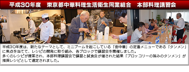 ●本部講習会は、各ブロックから選出された「タンメン」を持ち寄り、調理・試食後、評価する。また、その結果選考に残った「タンメン」の調理・試食後、組合推奨レシピを選定する。という流れで行われました。 |