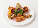 | 前菜の盛り合わせ | 新派五輪拼盤 | 海鮮湯葉巻 赤カブソース |